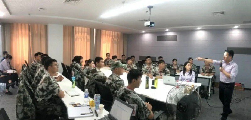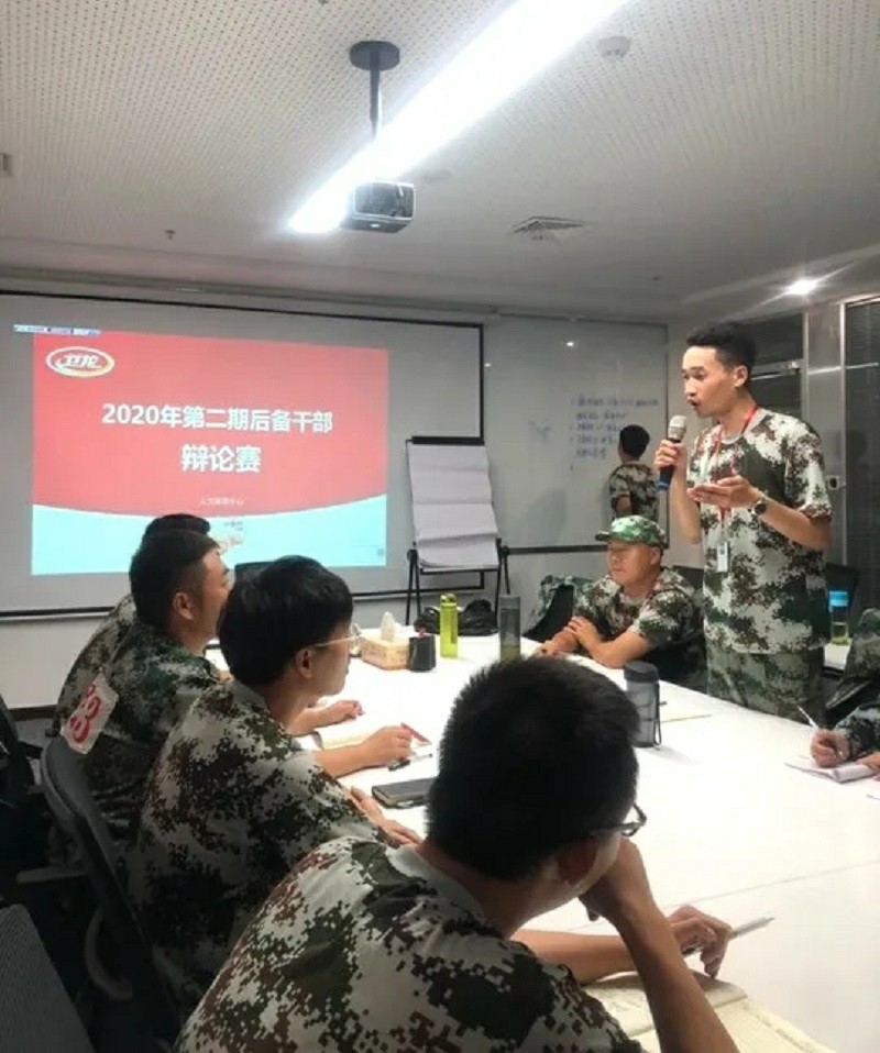 开营当天,陈总鼓励后备干部以集训为契机快速融入公司,并授予学员们“后备干部训练营”营旗。骄阳下,一群身着迷彩的活力青年站着挺拔的军姿、迈着有力的步伐、喊着响亮的囗号、唱着激昂的军歌,在训练场上挥汗如雨。